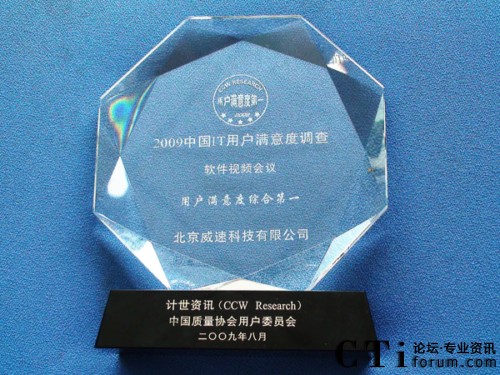 回顧過去的一年里,威速(V2)科技將產(chǎn)品和服務(wù)做到“簡單化、切實(shí)化、服務(wù)化”的獨(dú)特服務(wù)理念,獲得廣泛認(rèn)可,最終被授予“2009中國IT用戶滿意度年會(huì)”這一權(quán)威獎(jiǎng)項(xiàng)。喜獲此獎(jiǎng)是對(duì)威速(V2)科技在服務(wù)方面多年來堅(jiān)持不懈的肯定,更是對(duì)視頻會(huì)議平臺(tái)在中國信息化下給中國企業(yè)帶來的貢獻(xiàn)表示了認(rèn)可。