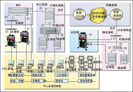 電路可靠。全網(wǎng)電路中沒有其它網(wǎng)絡(luò)設(shè)備,高院主會場由光端機直接使用E1接口與MCU連接,分會場由光調(diào)制解調(diào)器E1口直接與會議終端相接,電路非常簡捷。全程使用光纜傳輸,中間不用任何復(fù)用或轉(zhuǎn)換設(shè)備,不僅電路可靠而且對網(wǎng)絡(luò)故障判斷、維護顯得異常簡單。