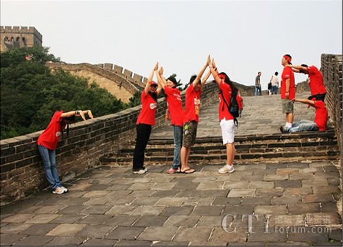 瞧瞧我們這架勢,時刻都不忘給自己是來自招商銀行的志愿者。在長城上擺CMB(China Merchants Bank),真是太有創(chuàng)意啦!