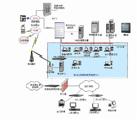 下圖是一個城市應急聯(lián)動中心具體組網拓撲: