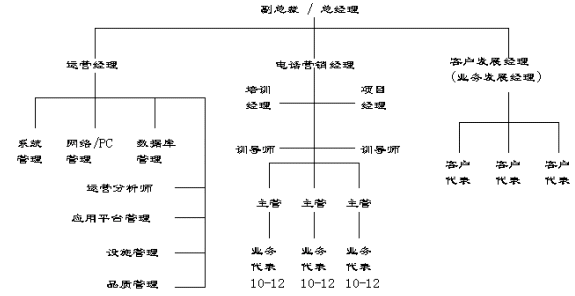 在呼叫中心的組織結構及職能分工上,外包型呼叫中心與企業(yè)自建型呼叫中心有很多共同點,它們間主要的區(qū)別在于外包型呼叫中心分工更細,而且有很多專門人員,而企業(yè)自建型呼叫中主的很多職能是由一人兼任或借助其它部門的支持和服務。從一個典型的外包型呼叫中心的組織結構來看,通常會設置如下一些組織單位: