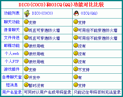 呵呵,前一陣子駕鼠逛網(wǎng),我發(fā)現(xiàn)了一款類似于時下QQ但比時下QQ還要好用且功能還要多的出色的新型的中文網(wǎng)絡(luò)即時通信工具軟件----夢幻尋呼DICO 2002!它集"一般聊天、語音聊天、文件傳送、郵箱功能、個人web/FTP、支持游戲插件、自帶聊天室"等功能于一體且可同時以用戶名或號碼登錄,開辟了網(wǎng)絡(luò)通訊軟件的新境界。是由深圳聚才網(wǎng)絡(luò)科技發(fā)展有限公司開發(fā)的共享軟件,最近版本是DICO1.11版,適用于Win 9X/NT/2K等操作系統(tǒng),語言界面為全中文界面,下載后的可執(zhí)行文件僅2.55M大!