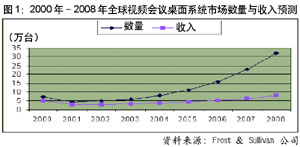 國(guó)內(nèi)的研究機(jī)構(gòu)也不甘落后,對(duì)2002年內(nèi)地視頻會(huì)議市場(chǎng)銷售額的預(yù)測(cè)高達(dá)20億至40億元人民幣不等。而眾多廠商也一致認(rèn)為,未來的一段時(shí)間將成為視頻通信,尤其是視頻會(huì)議市場(chǎng)發(fā)展的黃金時(shí)期。