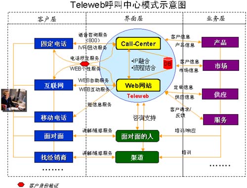 前進(jìn)中的CallCenter面臨的成本壓力問題、模式創(chuàng)新問題困擾著成長中的中國企業(yè),互聯(lián)網(wǎng)的蓬勃進(jìn)步為現(xiàn)代企業(yè)CallCenter的發(fā)展帶來新的機(jī)遇和挑戰(zhàn)。互聯(lián)網(wǎng)的優(yōu)勢和特點(diǎn)在于:媒介信息存儲量大,維護(hù)更新快,傳播范圍廣,獲取信息便捷;互動性強(qiáng),應(yīng)用手段豐富;成本低。這使得WEB服務(wù)與電話服務(wù)"雙劍合一",大大增強(qiáng)了呼叫中心的服務(wù)效率和質(zhì)量,成為一種新型的信息支持服務(wù)模式,我們不妨稱之為TeleWeb模式,是聯(lián)想集團(tuán)實(shí)踐服務(wù)戰(zhàn)略的有機(jī)組成部分和生動演繹。