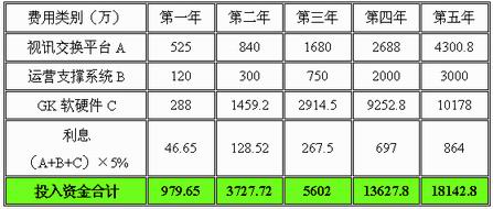 中國網(wǎng)通CNC視訊運營網(wǎng)絡(luò)在建網(wǎng)成本上主要考慮四個部分。一是視訊交換平臺MCU部分,主要用于多點視頻通信;二是視訊運營支撐系統(tǒng),包括各種運營所必須的軟件(網(wǎng)管、業(yè)務(wù)受理中心、業(yè)務(wù)管理中心)及相應(yīng)的硬件服務(wù)器;三是 H.323 視訊系統(tǒng)的關(guān)鍵組件GK軟件及相應(yīng)硬件服務(wù)器,其容量和個人視頻通信業(yè)務(wù)的發(fā)展情況息息相關(guān);四是投入資金利息。具體可細(xì)分如下: