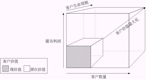 圖二 : 客戶價值與客戶數(shù)量、服務利潤和客戶生命周期的關系