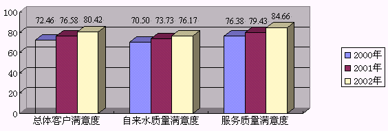 (2)率先建立以公布水質(zhì)信息為特點的客戶宣傳系列。過去水質(zhì)具有保密性,不能向外公開。近年來,市政府為改善水質(zhì)投入了大量的資金,使自來水質(zhì)量達(dá)到或超過了國家飲用水標(biāo)準(zhǔn),但受各種飲用水產(chǎn)品的宣傳影響,人們對自來水疑慮重重。據(jù)客戶滿意度調(diào)查,客戶對水質(zhì)的重視程度為0.63,遠(yuǎn)遠(yuǎn)高于對水量0.37的重視程度,說明客戶對水質(zhì)的期望值較高。為正確引導(dǎo)客戶的期望,市北公司參照國外先進(jìn)國家的慣例,爭取政府部門的支持,于2000年率先向社會公布了年度水質(zhì)報告,全面地介紹自來水水質(zhì)指標(biāo)完成情況,并系統(tǒng)的建立了水質(zhì)信息公布制度,包括公布年度水質(zhì)報告,每天在公司網(wǎng)站上發(fā)布主要水質(zhì)指標(biāo)及水壓、水量信息。在此基礎(chǔ)上,公司又編印"市北供水服務(wù)"小報,定期發(fā)放至市北供水區(qū)域的數(shù)千家居委會和物業(yè)公司及相關(guān)部門。特別從今年開始,公司通過改版后新水費帳單上的"市北供水服務(wù)"宣傳欄,又與廣大客戶建立了新的信息溝通渠道,初步形成了市北公司的客戶宣傳構(gòu)架,用較低的宣傳成本提高了客戶滿意度。
