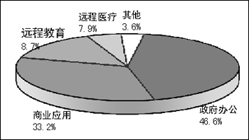我國(guó)的遠(yuǎn)程教育和遠(yuǎn)程醫(yī)療尚處于發(fā)展初期,所占份額分別是8.7%和7.9%。這反映視頻會(huì)議系統(tǒng)在遠(yuǎn)程教育、遠(yuǎn)程醫(yī)療等方面建設(shè)力度還不夠大。不過,據(jù)研究表明,這兩個(gè)領(lǐng)域的應(yīng)用近年來呈現(xiàn)出蓬勃發(fā)展的勢(shì)頭。