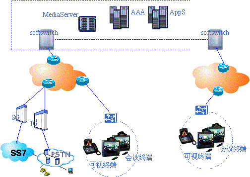 該方案除了提供點(diǎn)對點(diǎn)可視業(yè)務(wù),還能充分利用軟交換設(shè)備的互通能力,可視終端可以和PSTN網(wǎng)絡(luò)進(jìn)行互通,以及和其它的IAD終端進(jìn)行互通,避免了單獨(dú)建立一個(gè)可視網(wǎng)絡(luò)而帶來的經(jīng)營風(fēng)險(xiǎn)。