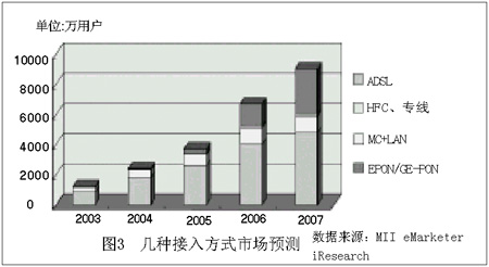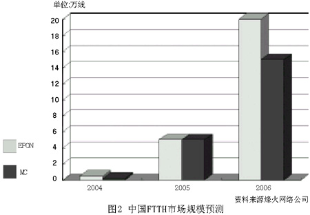 2004年初,中國ADSL用戶已增至1915萬戶,年內(nèi)將突破2000萬大關。正當ADSL大行其道時,運營商已經(jīng)入手,開始試用部分FTTH產(chǎn)品。