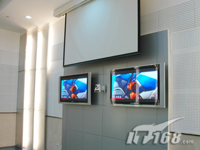 在副會場方面,和主會場區(qū)別不大,不過比主會場要光亮一點,面積也小了很多,所以主顯示系統(tǒng)只需要SONY PX40正面投影(120寸)就可以搞定。VPL-PX40可以多種方式安裝,包括桌面正投,吊頂及背投。供選購的兩款鏡頭擴展了安裝的靈活性。中央控制開關(guān)功能讓用戶能通過中央電源開關(guān)直接開關(guān)投影機。VPL-PX40還配備了獨特的密碼認證系統(tǒng),采用SONY液晶板的新型光學系統(tǒng),結(jié)合265W