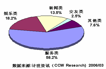2006年,IVR業(yè)務(wù)的發(fā)展已經(jīng)具備了良好的外部條件。首先,具有龐大的潛在用戶群。有關(guān)統(tǒng)計顯示,截至2005年11月,中國移動用戶數(shù)量達(dá)到3.88億,固定電話用戶數(shù)量達(dá)到3.51億,其中無線市話用戶數(shù)量達(dá)到8622萬。其次,市場容量急劇膨脹;再次,業(yè)務(wù)收入快速增長;最后,IVR不受手機(jī)型號的限制,潛在用戶的普及率極高。這些使得IVR具有良好的發(fā)展?jié)摿,計世資訊(CCW Research)認(rèn)為,IVR是繼短信(SMS)之后的又一座大型金礦。