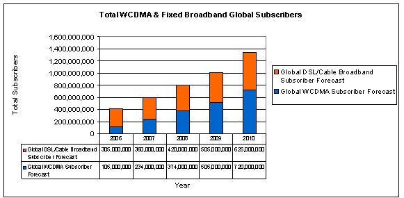 圖1:全球WCDMA和固定寬帶用戶預(yù)測