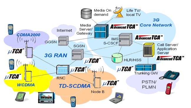 3G網(wǎng)絡(luò)中占主要地位的三個無線接入標準是WCDMA、TD-SCDMA與CDMA2000。3GPP與業(yè)界廠商對網(wǎng)絡(luò)結(jié)構(gòu)的標準化做出的杰出努力,為在世界范圍內(nèi)成功布署3G網(wǎng)絡(luò)業(yè)務(wù)起到了至關(guān)重要的作用。不過,3G網(wǎng)絡(luò)是復(fù)雜的系統(tǒng),包含有多種多樣的網(wǎng)元設(shè)備,AdvancedTCA與MicroTCA技術(shù)的出現(xiàn)把它的實現(xiàn)方式引向了標準化的道路,即通過商用組件快速、低成本地布署3G網(wǎng)絡(luò),減少了各種獨立的實現(xiàn)方式的復(fù)雜性,提高了互操作性。