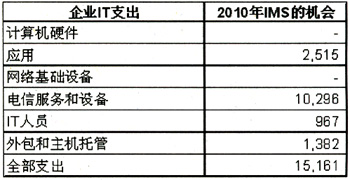 2010年預(yù)計(jì)IMS應(yīng)用在企業(yè)中的收入機(jī)會(單位:百萬美元)