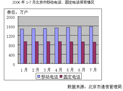 固定電話用戶增長(zhǎng)放緩,在北京這種移動(dòng)電話普及率很高的地區(qū),甚至出現(xiàn)了負(fù)增長(zhǎng)。