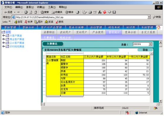 本系統(tǒng)通過(guò)對(duì)本地計(jì)費(fèi)帳務(wù)系統(tǒng)、網(wǎng)間結(jié)算系統(tǒng)、1000號(hào)客戶服務(wù)系統(tǒng)、“九七工程”系統(tǒng)、資源管理系統(tǒng)的動(dòng)態(tài)相關(guān)數(shù)據(jù)的提取,按日(天)記錄并分析開展?fàn)I銷服務(wù)工作所需的客戶基本資料、客戶關(guān)系資料、客戶收入信息、客戶消費(fèi)行為信息、客戶變動(dòng)信息、客戶障礙信息、客戶投訴信息、客戶競(jìng)爭(zhēng)動(dòng)態(tài)信息等支撐信息,指導(dǎo)各類客戶經(jīng)理開展有針對(duì)性營(yíng)銷服務(wù)工作。