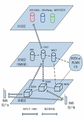 IMS技術(shù)對控制層功能做了進(jìn)一步分解,實現(xiàn)了會話控制實體CSCF(CallSessionControlFunction)和承載控制實體MGCF(Media
