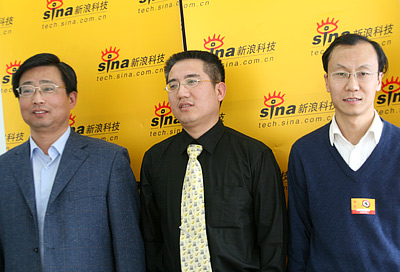 信產部電信研究院專家作客新浪科技,左起分別為陳育平、續(xù)合元和何寶宏。