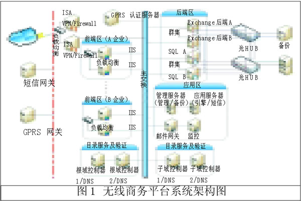無(wú)線商務(wù)平臺(tái)以微軟活動(dòng)目錄服務(wù)和Exchange服務(wù)器為平臺(tái)搭建,操作系統(tǒng)可以采用MS Windows 2003 Server,企業(yè)郵箱采用MS