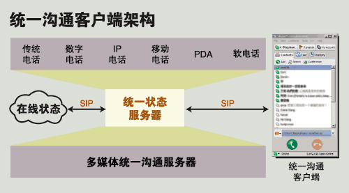 從MSN、QQ提供的語音聊天到曾經(jīng)風靡一時的Skype,再到今天思科、北電、微軟、Avaya等推出的統(tǒng)一溝通桌面客戶端系統(tǒng),通信的“最后一公里”發(fā)生了根本的轉(zhuǎn)變。原來為了節(jié)省長途話費而設計的VoIP,今天和ERP、CRM一樣成為了以提高企業(yè)運營效率為目的的核心生產(chǎn)力系統(tǒng)。統(tǒng)一溝通最令人憧憬的未來是給最終用戶提供一個友好的通信界面:“所有的信息源匯總到一起,而用什么方式來取得這個信息,只要在手邊最方便的工具上輕輕點擊就OK了。”