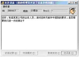 日常辦公輔助:與辦公自動化系統(tǒng)中郵件系統(tǒng)的集成,郵件到達提醒、離線消息轉(zhuǎn)郵件、RTX Client郵件直接發(fā)送操作;與電話的集成,支持IP電話、SIP電話;備忘錄功能,可以將交流信息直接存儲到備忘錄,并可設置定時提醒自己或他人;病毒掃描,自動掃描通過RTX新接收到的文件。