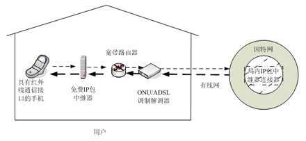 作為免費(fèi)IP包的專(zhuān)門(mén)應(yīng)用是,讓具有紅外線(xiàn)通信接口的移動(dòng)終端能上網(wǎng)瀏覽和收發(fā)消息和圖像等,下面進(jìn)行較為詳細(xì)地說(shuō)明。