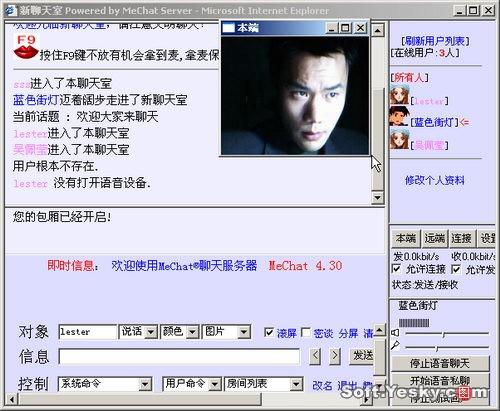 MeChat是由廣州和韻計(jì)算機(jī)有限公司開發(fā)的視頻聊天服務(wù)器。(點(diǎn)這里下載)與一般的采用ASP或CGI的語(yǔ)音聊天室不同,Mechat內(nèi)核由C