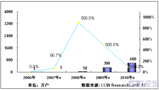 2008年,隨著3G在中國商用,以及奧運(yùn)帶來豐富視頻內(nèi)容,將推動(dòng)手機(jī)電視作為一項(xiàng)重要的移動(dòng)增值業(yè)務(wù)將進(jìn)入市場發(fā)展期;同時(shí)隨著網(wǎng)絡(luò)、終端、內(nèi)容、商業(yè)模式等因素的發(fā)展,產(chǎn)業(yè)鏈初步完善,看好手機(jī)電視業(yè)務(wù)的產(chǎn)業(yè)鏈各環(huán)節(jié)大力介入,北京奧運(yùn)會(huì)將大大激發(fā)用戶使用手機(jī)電視業(yè)務(wù)的熱情,從而推動(dòng)手機(jī)電視進(jìn)入快速發(fā)展階段。根據(jù)計(jì)世資訊預(yù)計(jì),2008年中國手機(jī)電視用戶將達(dá)到400萬。