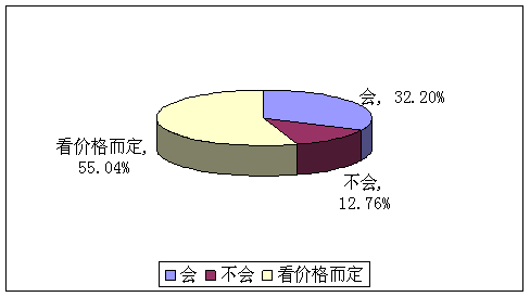 A、會(32.20%) B、不會(12.76%) C、看價(jià)格而定(55.04%)