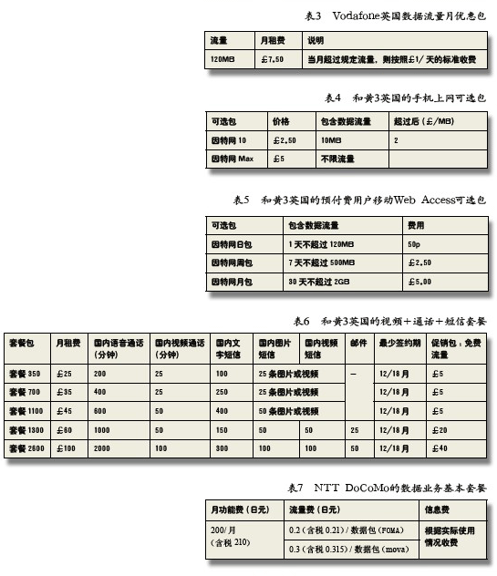 國外運(yùn)營商 移動(dòng)數(shù)據(jù)業(yè)務(wù)資費(fèi)策略