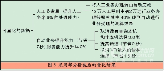 從圖3的分析中可以看出,如果人工服務(wù)采取1項措施,自動業(yè)務(wù)采取3項措施,則可以得出如下的量化結(jié)果: