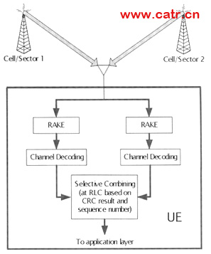 當終端用戶移動到不同基站下的小區(qū)分界處時候,采用宏分集技術同時接收來自兩個基站的電視數(shù)據(jù)(見圖3)。在實現(xiàn)宏分集技術時,要求網絡側針對同一MBMS業(yè)務在兩小區(qū)間進行內容同步和一定程度上的時間同步。