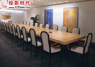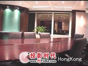 該會(huì)議室采用淺灰色色調(diào),與普通會(huì)議室沒(méi)有太大差別,采用頂部吊掛的投影機(jī)作為視頻的輸出設(shè)備,節(jié)省了會(huì)議室的空間,系統(tǒng)設(shè)備配置略復(fù)雜,具體如下: