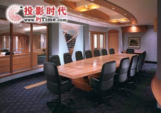 中型會(huì)議室,一般指15人以上60人以下,中型會(huì)議室在室內(nèi)裝修、設(shè)備配備等方面都有一定的要求。會(huì)議室裝修設(shè)計(jì)時(shí),對(duì)于會(huì)議室層高在3米以上,可采用中央做造型燈棚,燈棚形式應(yīng)與會(huì)議室內(nèi)桌面造型相協(xié)調(diào),燈棚處理的好會(huì)加強(qiáng)會(huì)議區(qū)域內(nèi)的光照效果。當(dāng)房高在3米以?xún)?nèi),不宜采用吊頂?shù)难b修,可根據(jù)房間的大小適當(dāng)安裝顏色協(xié)調(diào)的吸頂燈。房間地面宜采用顏色協(xié)調(diào)的地毯,墻面可采用具有一定紋理的粉白色、淺灰色墻紙,局部以掛畫(huà)、植物作裝飾,下面推薦幾個(gè)會(huì)議視訊會(huì)議室圖供參考: