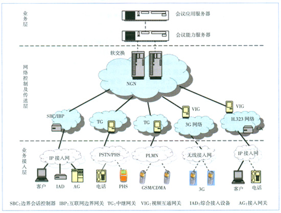 業(yè)務(wù)接入層面呈多元化,包括普通固定電話、小靈通、IP電話、視頻終端、PC軟終端、移動終端等。
