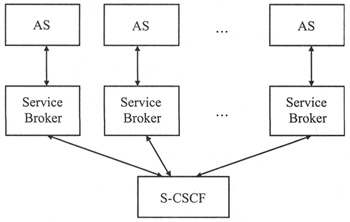 分布式控制方式為每一個(gè)AS都配置一個(gè)ServiceBroker,S-CSCF把每個(gè)ServiceBroker都視作AS,通過(guò)ISC接口與其交互。S-CSCF將請(qǐng)求觸發(fā)給ServiceBroker,AS執(zhí)行完后,Service