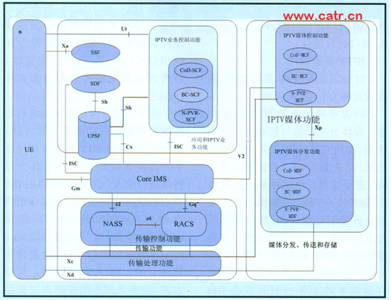 Release 1的研究成果上,其中包含了已有的NASS和RACS子系統(tǒng),并適當加入與IPTV相關的網絡功能實體來實現(xiàn)對IPTV業(yè)務的擴展。(如圖2所示)