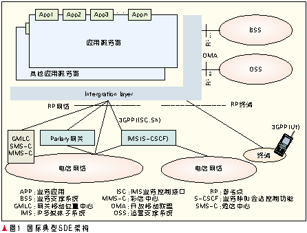 為了解決這一迫切的問題,過去一年中一個新的思路正逐步出現(xiàn),即:如果不能把原來的non-SIP應用改造為SIP應用,那么就擴展原來的IMS業(yè)務體系架構本身,使其在管理控制SIP應用的基礎上,也能夠管理控制non-SIP和non-IMS的應用[3]。在這一新的思路下,出現(xiàn)了新的發(fā)展動向:在IMS之上建立開放融合的業(yè)務提供環(huán)境(SDE),