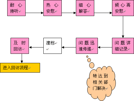 我們將投訴問題呼叫的基本過程分為以下七個方面:   其基本流程示意圖如下