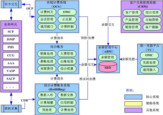 在線計費系統(tǒng)通過實時信令交互實現(xiàn)對高風險和高價值業(yè)務的實時計費;綜合計費帳務系統(tǒng)通過準實時話單采集實現(xiàn)對后付費用戶的準實時計費;綜合帳務系統(tǒng)實現(xiàn)全業(yè)務的綜合優(yōu)惠和帳務處理;獨立的余額管理中心實現(xiàn)對電信余額的統(tǒng)一管理,未來將成為電信的“內部銀行”;統(tǒng)一充值平臺實現(xiàn)全網全業(yè)務的統(tǒng)一充值支付。