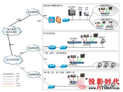 福建省農(nóng)業(yè)廳主管全省農(nóng)業(yè)、畜牧、農(nóng)機(jī)、農(nóng)墾等工作,設(shè)區(qū)市及縣(市、區(qū))設(shè)置農(nóng)業(yè)局主管相應(yīng)工作,其中部分設(shè)區(qū)市、縣農(nóng)業(yè)局和畜牧局分設(shè)。全省農(nóng)業(yè)視頻會(huì)議系統(tǒng)設(shè)計(jì)在省農(nóng)業(yè)廳、設(shè)區(qū)市農(nóng)業(yè)局、畜牧局建設(shè)各自分會(huì)場(chǎng),非設(shè)區(qū)市所在地的縣(市、區(qū))至少建設(shè)一個(gè)分會(huì)場(chǎng),使得全省農(nóng)業(yè)系統(tǒng)多部門均能在縣級(jí)或設(shè)區(qū)市所在城鎮(zhèn)同城就近開會(huì)。系統(tǒng)可以在今后進(jìn)行擴(kuò)展建設(shè),使全省縣級(jí)農(nóng)業(yè)、畜牧部門都能夠建設(shè)各自分會(huì)場(chǎng)。
