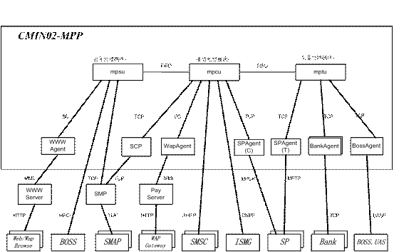 Provider)的交易請求,根據(jù)用戶的賬戶設(shè)置情況,與本地數(shù)據(jù)庫(或銀行、或BOSS系統(tǒng))交互,完成對用戶支付賬戶的扣費操作;業(yè)務(wù)受理部分MPSU:完成業(yè)務(wù)受理的功能,處理管理員、營業(yè)廳操作員、或用戶的業(yè)務(wù)管理請求,進行相應(yīng)查詢、配置或計算,并返回結(jié)果;代理部分Agent,例如:WWWAgent,BankAgent等負責(zé)與各個外部實體的通信;另外,系統(tǒng)還應(yīng)有輔助模塊用來完成系統(tǒng)各進程的守護、監(jiān)視、控制、以及系統(tǒng)性能數(shù)據(jù)的采集功能。