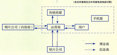 縱觀國內(nèi)陸續(xù)開展的移動多媒體業(yè)務(wù),業(yè)務(wù)模式的創(chuàng)新并沒有帶來商業(yè)模式的進步。無論是與傳統(tǒng)紙媒合作的手機報,還是與唱片公司合作推出的類似于中央音樂平臺的音樂下載等,筆者認(rèn)為其商業(yè)模式仍局限于2G傳統(tǒng)增值業(yè)務(wù)思路,即運營商聯(lián)合內(nèi)容商提供業(yè)務(wù),用戶支付通信費和信息費獲取內(nèi)容資源,運營商和內(nèi)容商對信息費進行分成。