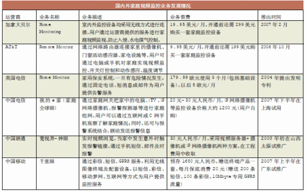 例如,在中國臺灣地區(qū),移動運營商已經(jīng)推出了基于3G移動網(wǎng)絡(luò)的無線視頻監(jiān)控業(yè)務(wù),用戶可通過3G手機對家庭情況進行監(jiān)控。同時,3G家庭終端(前端監(jiān)控設(shè)備)具備專業(yè)的無線遠程監(jiān)控功能,當出現(xiàn)盜賊入侵、意外失火或是煤氣泄漏等狀況,它會把報警信息發(fā)送到主人手機上,讓主人及時獲悉并做出處理。3G家庭終端還可以根據(jù)指令拍攝下家中的實時視頻畫面,并發(fā)到主人手機中供以后取證,這對于中高端家庭來說,具有相當?shù)恼T惑力。