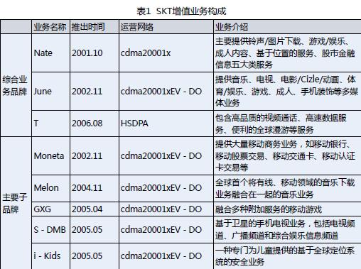 SKT的增值業(yè)務(wù)主要由三大綜合業(yè)務(wù)品牌和若干子品牌構(gòu)成(見表1),其中娛樂類業(yè)務(wù)受到多數(shù)人的喜愛,比如Nate、melon、GXG等。