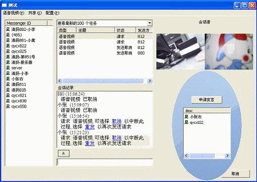 二、如果電腦帶攝像頭,則上一步的語音通話的操作也將包含視頻信息,即同時進行語音視頻通話。