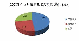 由于中國特色的收視習慣和廣播電視輿論宣傳功能,低門檻甚至零門檻的電視收視費用,使得有線網絡在整個商業(yè)價值鏈條上沒有顯示出應有的價值,而真正處于價值鏈核心的是以廣告為主體收入的電視臺。