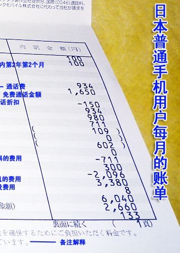 到底在購(gòu)買各種套餐之后,用戶每個(gè)月使用多少錢(qián)呢?下面是一份普通的日本手機(jī)用戶每個(gè)月收到的賬單,通過(guò)這份賬單我們清晰看出3G資費(fèi)的構(gòu)成。在這里,我們清晰看到?jīng)]有漫游費(fèi),如果沒(méi)有折扣,該用戶至少需要付近3萬(wàn)日元的費(fèi)用,實(shí)際上,最后用戶需要繳納的費(fèi)用是6064日元,其中還包含了購(gòu)買新款手機(jī)3380日元的費(fèi)用,實(shí)際上產(chǎn)生的話費(fèi)是2660日元。