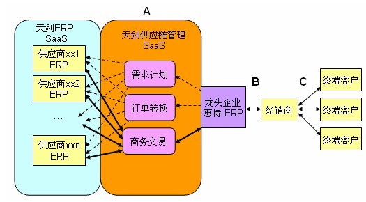 (1)改變傳統(tǒng)分散的供應(yīng)商的購銷環(huán)節(jié),將企業(yè)之間的購銷關(guān)系鎖定在特定的公共的供應(yīng)鏈平臺上。即通過SaaS供應(yīng)鏈管理平臺,有機(jī)地、相互依賴地鏈接在一起,協(xié)同共贏實(shí)現(xiàn)真正意義上的電子商務(wù)交易。